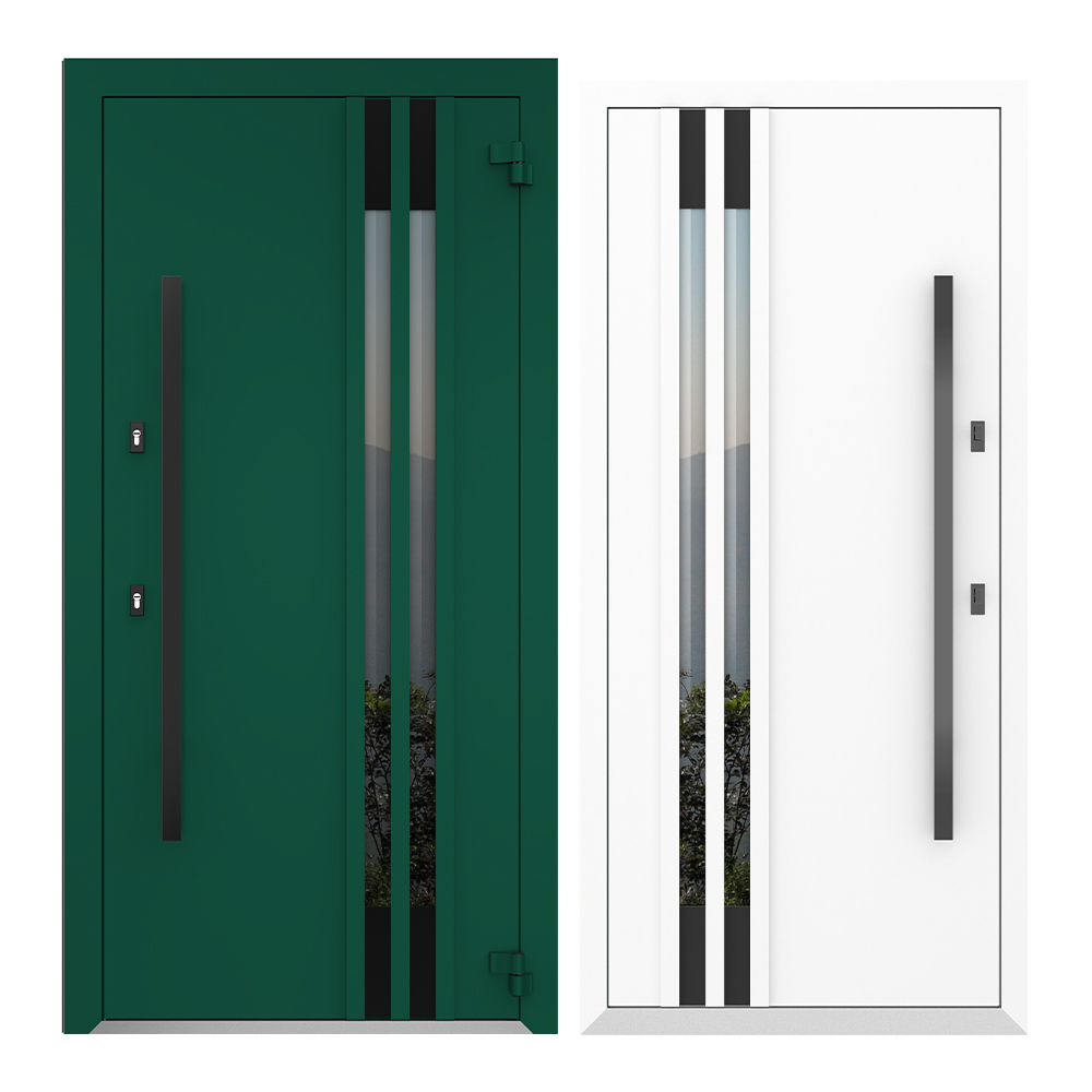 Внешняя отделка - Оцинкованная сталь (окраска на выбор), декор. алюм. рейки Decolux (цвет на выбор), декор. вставка (черное стекло лакобель)